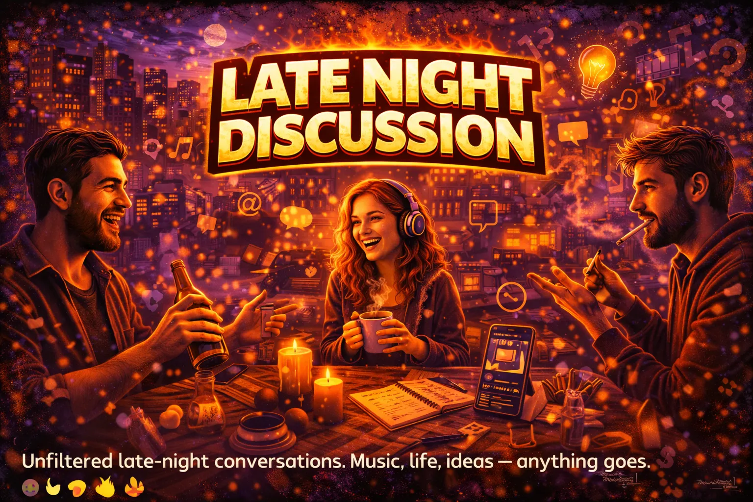 Unfiltered late-night conversations. Music, life, ideas — anything goes.